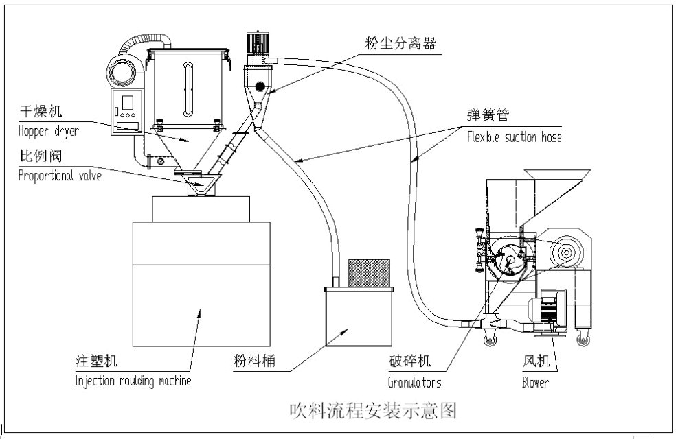短時間的回收,避免汙染,混料所造成的不良率,可減少塑料、人工、管理、倉儲,購料資金的浪費與損耗