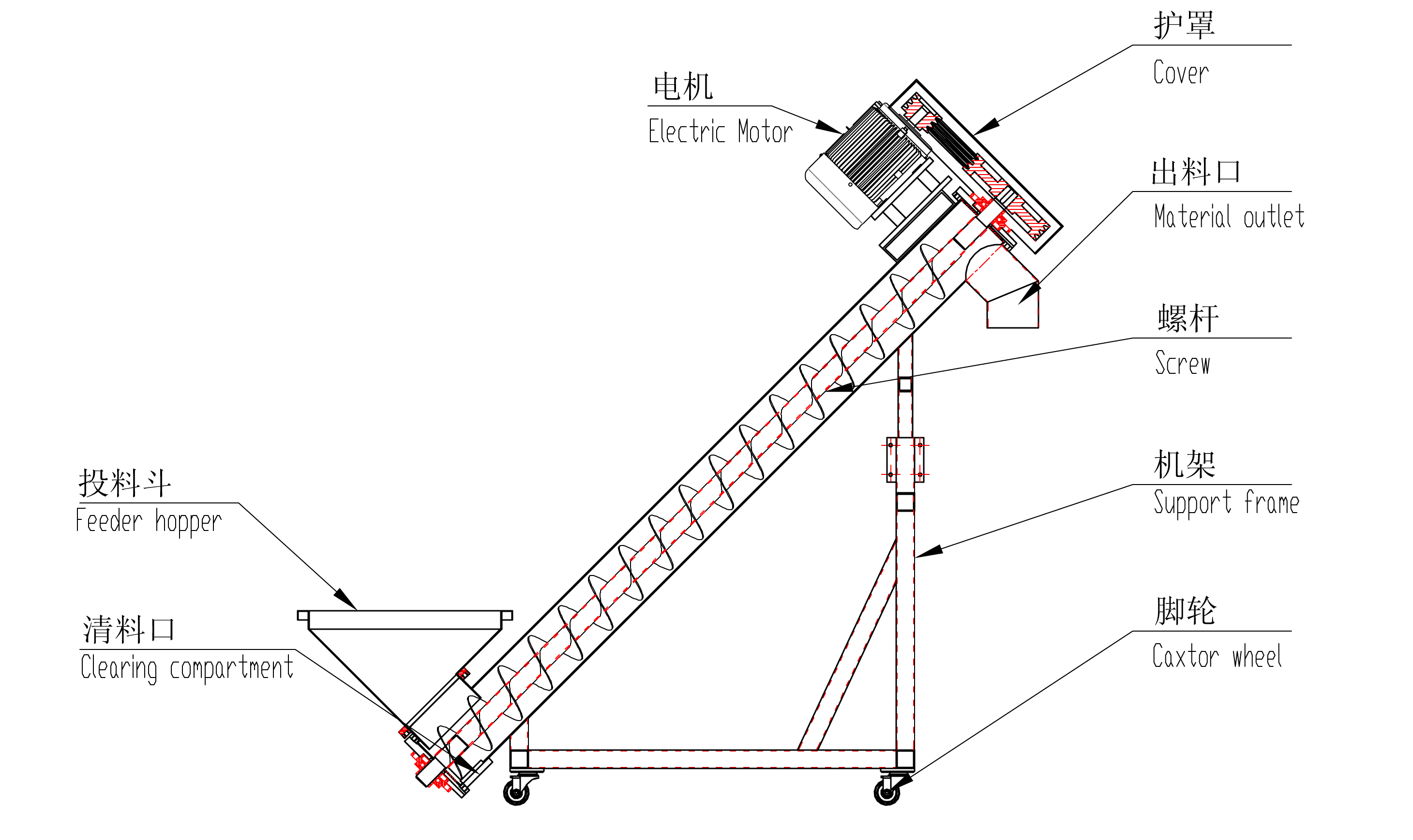 螺杆式上料機根據螺旋旋轉時,由葉片的推動作用,同時在物料自身重力、物(wu)料(liao)與(yu)料(liao)管(guan)內(nei)壁(bi)間(jian)的(de)摩(mo)擦(ca)力(li)以(yi)及(ji)物(wu)料(liao)的(de)內(nei)摩(mo)擦(ca)力(li)的(de)作(zuo)用(yong)下(xia),物(wu)料(liao)與(yu)螺(luo)旋(xuan)葉(ye)片(pian)和(he)料(liao)管(guan)相(xiang)對(dui)滑(hua)動(dong)的(de)形(xing)式(shi),在(zai)料(liao)管(guan)內(nei)向(xiang)前(qian)移(yi)動(dong)的(de)機(ji)械(xie)傳(chuan)動(dong)原(yuan)理(li)設(she)計(ji)的(de)。可(ke)用(yong)於(yu)塑(su)膠(jiao)原(yuan)料(liao)顆(ke)粒(li)、粉塵料、礦砂等物料輸送;