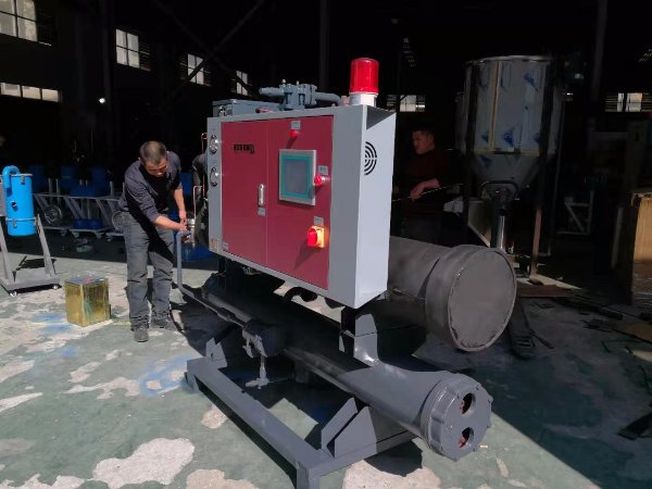采用螺杆式製冷壓縮機、冷凝器、蒸發器、熱力膨脹閥、油分離器以及自控元件和儀表等組成的組裝式製冷裝置。